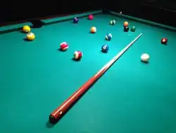 En billardkø er en stav lavet af træ og/eller metal, med en lille stykke læder med stof på, som bliver kaldt for en dup.