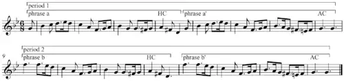 Hvis A og B stykket er af nogenlunde samme længde, betegnes kompositionen som symmetrisk.