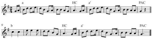 - ↑ Ved formanalyse forstås en analyse af musikstykkets struktur