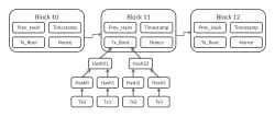 - En henvisning til den foregående blok (sammenkædning). Dette vil ofte være et sekvensnummer (også kaldet 'højde') sammen med hashværdien for den foregående blok.