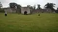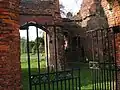 Mursten, ufærdigt, portbygning og kapel i ruiner survive.[4] |