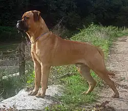 En Bullmastiff er en muskuløs vagthund. Det siges at den i sin tid var en krydsning mellem 60% Engelsk Mastiff og 40% Old English Bulldog (uddød race), som sidenhen er blevet intenst stambogsført gennem mange år.