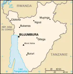 | Hovedstad | Gitega 3°22′S 29°21′Ø / 3.367°S 29.350°Ø |