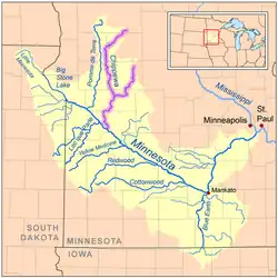Chippewa River kommer fra Chippewa Lake i Douglas County, 11.3 km nordvest for Alexandria, og passerer adskillige søer i sit øvre løb. Den løber mod vest gennem Grant County, hvor den drejer i mere sydlig retning , gennem Pope, Stevens, Swift og Chippewa Counties. Floden passerer byerne Hoffman, Cyrus og Benson; den forenes med Minnesota River i Montevideo. Nogle dele af floden , især i i Pope og Swift Counties, er blevet rettet ud og kanaliseret.