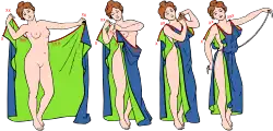 Over den bar kvinderne en overdragt, epiblema, ampechonion, mændene kappe, chlamys eller himation. I måden at bære dragten på gjorde de skiftende moder og personlig smag rig variation mulig, hvilket terrakottafigurer, vasebilleder og statuer vidner om. Dog har ofte kunstnerne dels afveget fra det brugelige af kunstneriske hensyn, dels været bundne af visse traditioner, navnlig ved fremstilling af guddomme. Således vises nogle af guderne med lang chiton. Samme dragt kunne bæres ved religiøse fester, af skuespillere, kitharoder,[1] vognstyrere ved festlege osv.; mens omvendt gudinden Artemis, amazoner, danserinder og andre bærer kort chiton.