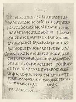 Illustrationen viser sidste side i Markusevangeliet.