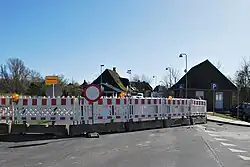 Grænsen, som deler Rudbøl i Danmark og Rosenkranz i Tyskland, er spærret på grund af Coronaviruspandemien.