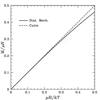 hvor er Curies konstant. Loven gælder for små værdier af , da magnetisering har et maksimum, hvor proportionaliteten stopper.[1]
