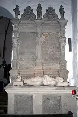 Daniel Rantzau faldt under belejringen af Varberghus i 1569. Hans epitafium i Westensee Kirke ved Kiel blev beskadiget af svenskerne under Kejserkrigen, men restaureret 1917.