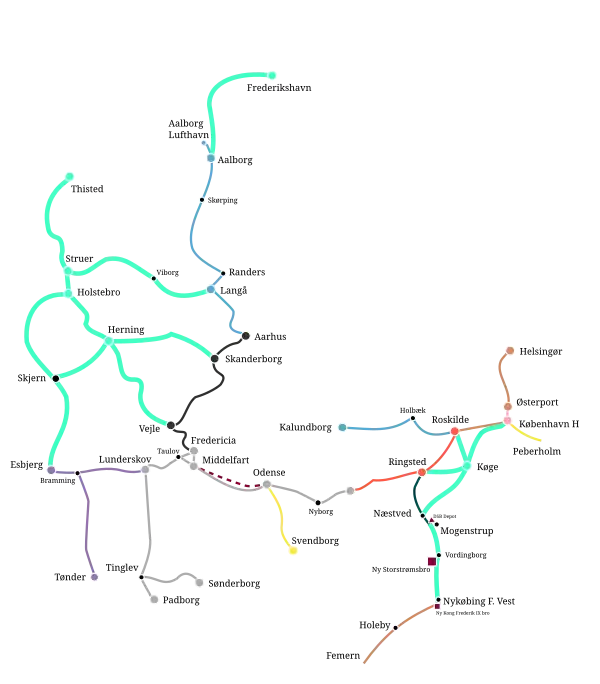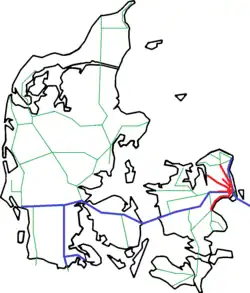 - ↑ "Fjernbanen". Banedanmark. Arkiveret fra originalen 2023-11-01.