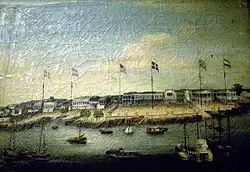 I 1684 tillod Kangxi-kejseren udlændinge at handle med Kina i fire byer. Én af dem var Kanton.[2] I 1686 fik de også lov til at bo i faktoriområdet i Kanton nær udløbet af Perlefloden. I 1757 bestemte Qianlong-kejseren, at dette var det eneste sted, hvor vestens folk måtte bo i Kina.