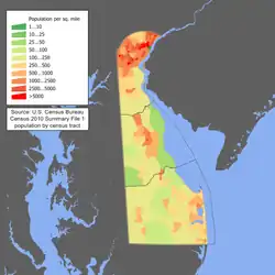 - ↑ "Demographic, Social and Economic Profile for Delaware" (PDF). Arkiveret (PDF) fra originalen 28. april 2016. Hentet 26. juni 2016.