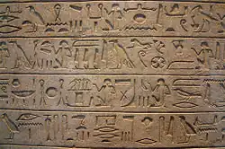 Ægyptens eget gamle navn i antikken var km.t. Dette navn bliver almindeligvis vokaliseret Kemet, men blev sandsynligvis udtalt [kuːmat] i Det gamle Egypten.[1] Med hieroglyffer