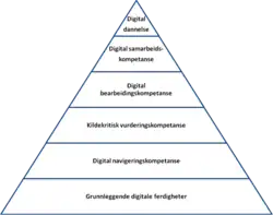 Der kan identificeres mange forskellige færdigheder og evner, som kan være forbundet med digital dannelse. Modellen til højre er en visualisering af digital dannelse og de mest kendte færdigheder.
