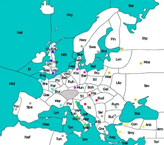 Diplomacy er et brætspil for syv spillere, baseret på optakten til 1. verdenskrig i Europa. Spillets start er henlagt til 1901.