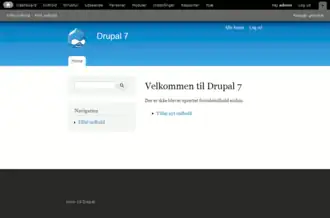 ![]() Forsiden af en standard-installation af Drupal 7 med dansk sprogpakke. | |