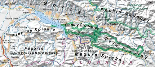 | Dunajec i Pieninybjergene danner på en lang strækning grænsen mellem Polen og Slovakiet | |