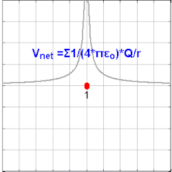Det ses, at potentialet som forventet er nul, når afstanden er uendelig stor. Potentialet blevet derimod større og større, jo mindre afstanden bliver. Hvis ladningerne og har samme fortegn, vil de altså frastøde hinanden, mens ladninger med forskelligt fortegn tiltrækker hinanden.