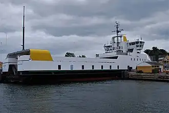 Elfærgen Ellen i sit færgeleje i Søby i juni 2018 | |