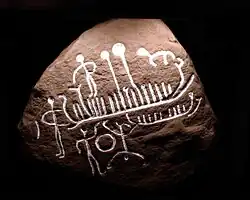 Stenen blev fundet i et stengærde. Den er udsmykket med et stort og et mindre skib, samt et dyr og fire menneskelige figurer. Besætningen på skibene er afbildet som streger. Desuden er der to længere streger med en rund prik for enden, som er blevet tolket som to lurer.