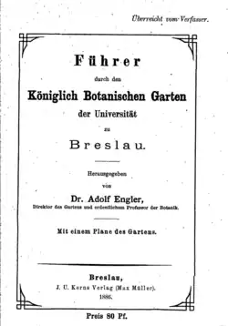 I 1886 udgav Engler en "Guide til den kgl. Botaniske Have" i Breslau,[4] hvor han var direktør, og i den havde han udarbejdet et skema, der var modificeret efter et tilsvarende af botanikeren August Wilhelm Eichler, der senere i udvidet form blev publiceret i hans Syllabus der Pflanzenfamilien i 1892.[5] Her var skemaet sat i det nye post-darwinistiske perspektiv. Englers Syllabus udkom første gang i 1892 med titlen Syllabus der Vorlesungen über specielle und medicinisch-pharmaceutische Botanik. Mange efterfølgende udgaver er udkommet siden, og værket blev videreført efter Englers død i 1930. Den seneste udgave var den 13. i 2009.[6]