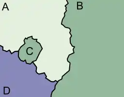 - Tyske eksklaver, en række mindre tyske områder beliggende i Schweiz og Belgien.