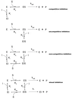 Reaktionsrater for enzymer kan sænkes med forskellige typer af enzyminhibitorer.