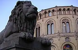 Løverne udenfor Stortinget i Oslo er udført af straffefangen Gudbrand Mørstad, der var dømt til livsvarigt fængsel for drab og falskmøntneri. Han blev senere benådet. [9]