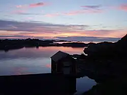 - Solnedgang over Fedje i juli 2006. Rognsvågen, en del af Fedjefjorden som ligger til højre (øst) på billedet.
