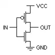 Læg mærke til at gaten på IGFET ikke rører substratsymbolet