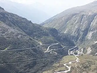 - Furkapass Strasse med floden Rhône synlig i dalen