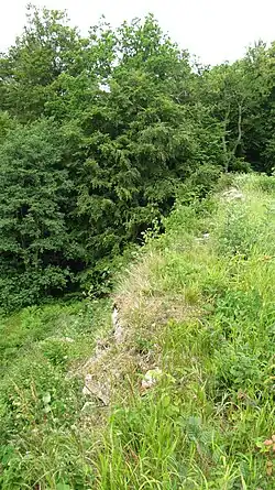 Fæstningen er opført i Almindingen på en bakke næsten midt på øen.[5][7] Det er flere hundrede meter fra hovedvejen mellem Rønne og Svaneke.[1] Området er særligt mod syd beskyttet af klipper, der er op til 20 meter høje.[8] Et vandhul på den nordvestlige side var borgens primære vandforsyning.[2] Ruinerne ligger på en bakketop.[9]