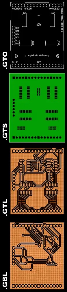 Disse filer skabes af EDA-software til printkortlayout som fx KiCad, og sendes herefter til fabrikanter som henter filerne ind i de rette maskiner for hver trin af produktionsprocessen. Filerne kan endda skrives ud på fx laserprintere på transparente media.