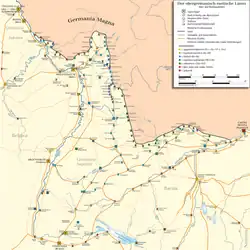 Mellem 260 og 280 opgav de romerske soldater Dekumatlandet, og den militære grænse blev trukket tilbage til Rhenus (Rhinen) og Danubius (Donau). Under kejser Diokletians reform i 297 ble provinsen Germania Superior delt i Germania Prima i nord og Maxima Sequanorum i syd og del af Diocesen (Dioecesis) Gallia med den kejserlige by Trier (Augusta Treverorum) som hovedstad. Kejser Valentinian I bygget omkring 370 befæstninger langs grænsen i et forsøg på at sikre den.