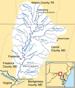 Ewell begyndte at krydse Potomacfloden ved Hagerstown, Maryland sent den 15. juni sammen med Jenkinss kavaleribrigade. Hills og Longstreets korps fulgte den 24. og 25. juni.[20]