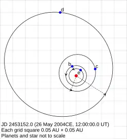 - ↑ Beust, H.; et al. (2008). "Dynamical evolution of the Gliese 581 planetary system". Astronomy and Astrophysics. 479 (1): 277-282. doi:10.1051/0004-6361:20078794.