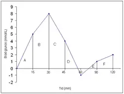 - er defineret som blodsukkerstigningen 0 til 2 timer efter indtagelsen af aktuelle fødevare, som indeholder 50 gram tilgængeligt kulhydrat og udtrykkes som en procentdel af en referencefødevare med samme indtagelsesinterval og vægt som foran givet.