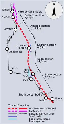- ↑ "Gotthard Base Tunnel: Driving complete: AlpTransit Gotthard AG". Arkiveret fra originalen 1. juni 2016. Hentet 1. juni 2016.