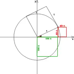 Den trigonometriske grundrelation[1] (også kaldet idiotformlen[2] eller idiotreglen[1]) er en matematisk ligning af den slags, der kaldes en identitet (fordi den er sand for ethvert ). Den siger at kvadraterne på sinus og cosinus til det samme tal tilsammen altid er lig med 1: