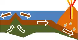 Processen som vedvarende tilfører nyt materiale til havbunden er dér hvor oceanbundspladerne trækkes fra hinanden af magmastrømme herunder – og selve materialetilføjelsen sker i centerlinjerne af oceanryggene – og kontinentalskrænternes nedfaldne sediment. Processen som vedvarende fjerner havbund er subduktionszoner hvor havbunden glider under en anden tektonisk plade.