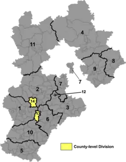 | Kort | # | Navn | Hanzi | Pinyin | Administrativt centrum |