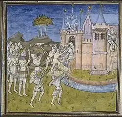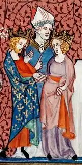 ![]() Miniatureportræt fra Chroniques de France ou de St Denis, 1300-tallet | |