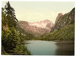 Dachstein set fra nordvest med Gosaugletsjeren og Gosausee