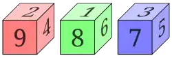 Sæt med ikke-transitive terninger for tre spillere