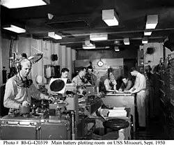USS Missouri's plotterum/ildledercentral omkring 1950