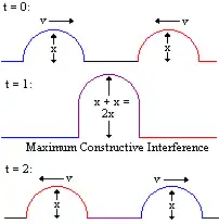 Konstruktiv interferens - bølgerne forstærker hinanden.