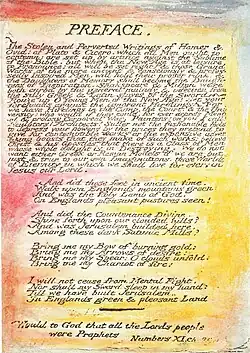 Under teksten skrev Blake et bibelcitat: "Would to God that all the Lord's people were Prophets,[2] Numbers chapter 11, verse 29".[5] ("Om bare alt Herrens folk var profeter!, Fjerde Mosebog 11:29"[6].