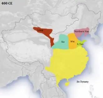 | Hovedstad | Luoyang (265–311) Chang'an (312–316) Jiankang (317–420) |