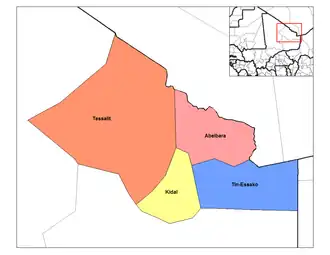 - ↑ Communes de la Région de Kidal (PDF), Ministère de l’administration territoriale et des collectivités locales, République du Mali, arkiveret fra originalen (PDF) 9. marts 2012, hentet 23. juli 2012(fransk).