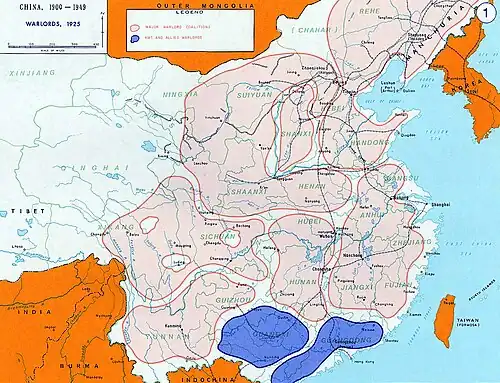 Ved at flytte hovedstaden til Nanjing havde Chiang sikret sig i sin magtbase, hvilken fuldendtes ved Nordøst Flag-udskiftningen og den kinesiske genforening i 1928. Flere krigsherrer blev ikke slået med valgte at samarbejde med den nye nationale regering, hvilket siden skulle give Chiang problemer. Feng Yuxiang og Yan Xishan gjorde oprør i 1930 under krigen på de centrale sletter. Mod nordvest udbrød Xinjiang-krigene, der varede fra 1931 til 1937. Chiang måtte nedkæmpe Fujian-oprøret i 1933-1934. Zhang Xueliang tog del i Xi'an-hændelsen i 1936. Dertil kom utallige mindre krigsherrer, banditter, militante etniske mindretal samt kommunisterne, der virkede i landdistrikterne og fjerne yderkanter. KMT selv var plaget af indre fraktionsdannelser, hvor forskellige indflydelsesrige ledere som Wang Jing-wei og Hu Han-min gjorde oprør mod Chiang. Chiangs faktiske magt var mindre uden for provinserne omkring Jiangsu. Kort og godt: Krigsherre-tiden blev egentlig ikke afsluttet men fik en ny fremtoning. Alle kliker gjorde nu brug af Zhongshan-uniformen og havde partimedlemsskab, hvorved de var KMT-forbundne. Først efter afslutningen af den kinesiske borgerkrig i 1950 oplevede landet noget, der mindede om en fælles, forenet regering i lighed med tiden før 1915.